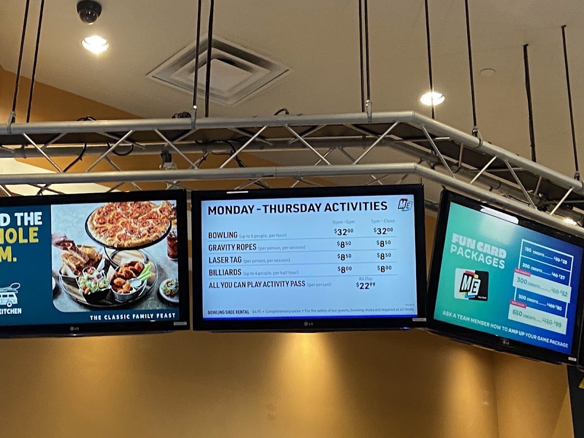 This menu is designed for casual dining experiences, suitable for families, groups, and individuals looking to enjoy a quick meal or light bites alongside entertainment activities. The variety supports different meal preferences and occasions, including children’s party services and group outings.